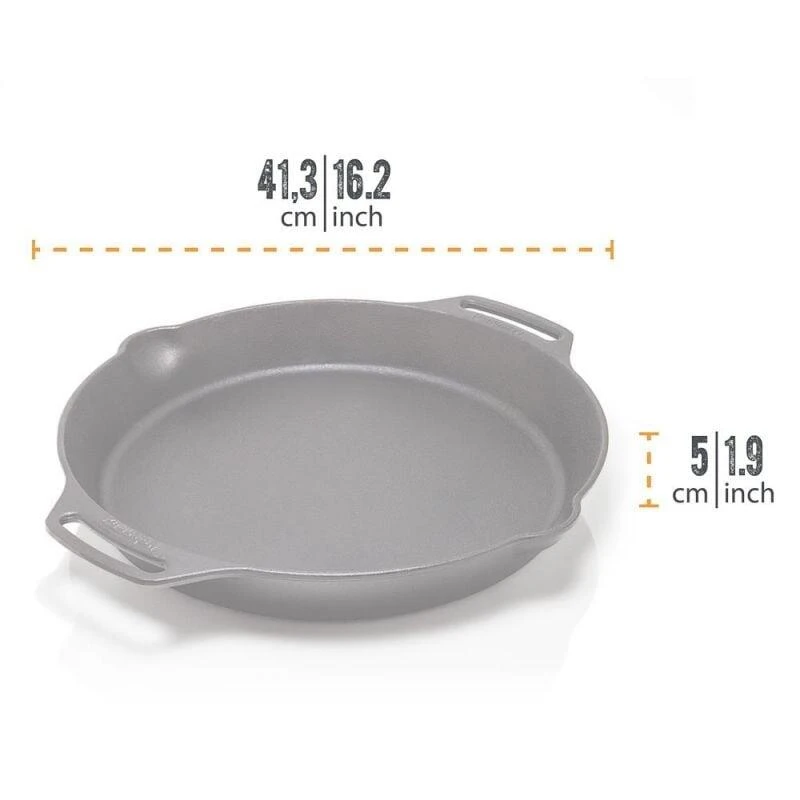 Cette magnifique poêle en fonte Petromax à deux poignées et mesure 35 cm de diamètre. Elle pèse un lourd 4,4 kg.